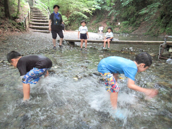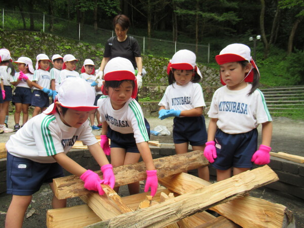 | 5歳児たけ組のお泊り保育で 夕焼け小焼けの里に行ってきました。 3園交流イベントがあったり、水遊びやキャンプファイヤー、散策など 楽しい思い出が沢山できました。 |